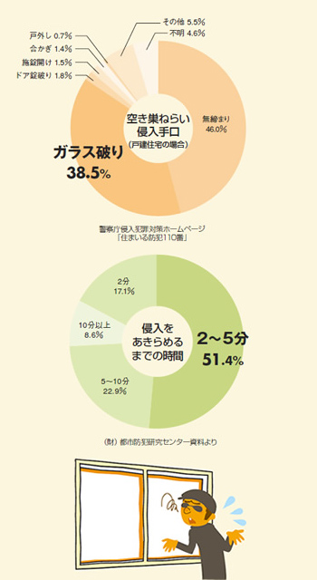 侵入盗は、5分以上侵入に手こずれば、 あきらめる確率が高くなりますので、
